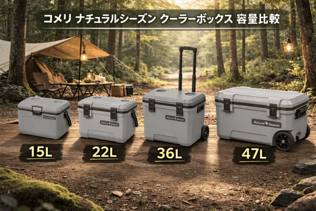 真ん中の商品がコメリの22Lのグレーになります。