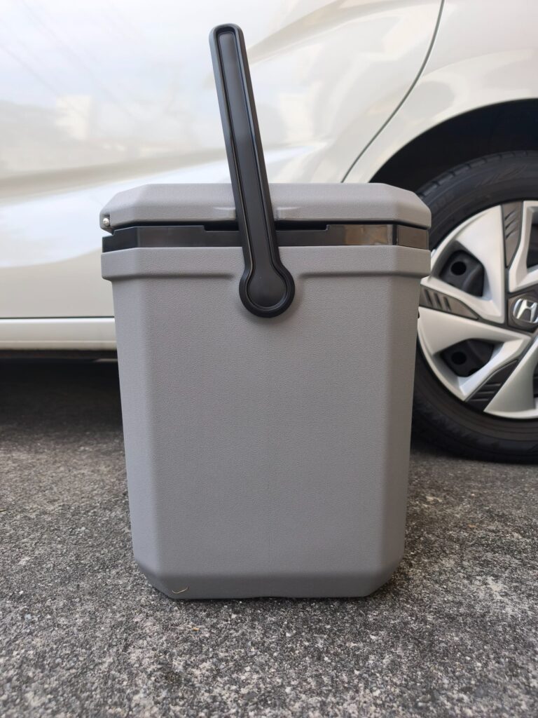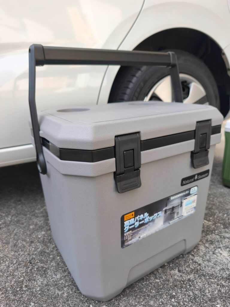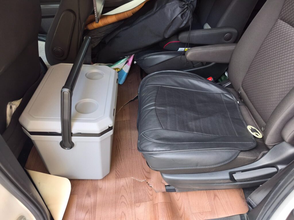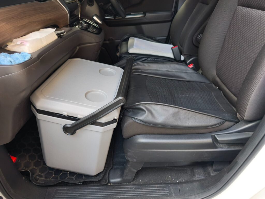 ↓9Lのクーラーボックスはこのような感じになります。いずれにしてもコメリの22Lは3列目の席の後ろではドアを閉められません。